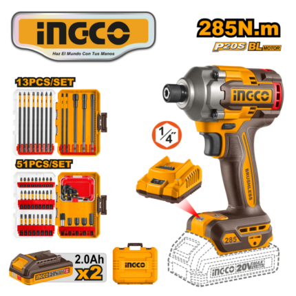 ATORNILLADOR DE IMPACTO DE 285NM 1/4″ + 2BAT 2.0AH + CARGADOR – #CIRLI2028