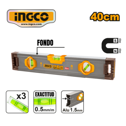 NIVEL DE ALUMINIO MAGNÉTICO PRO 40CM (16″) – #HSL38040M