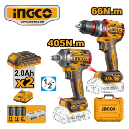 KIT 3PZ AMOLADORA 4.1/2″ + TALADRO 66NM + LLAVE DE IMPACTO 405NM + ACCESORIOS – #CKLI20358