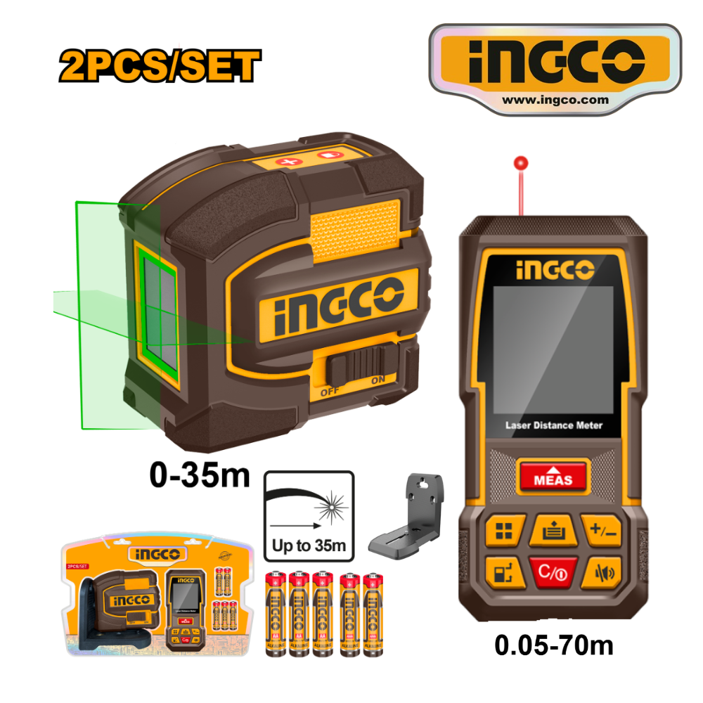 KIT NIVEL LÁSER VERDE 2 LÍNEAS + MEDIDOR LÁSER 70M – #COSLL0401