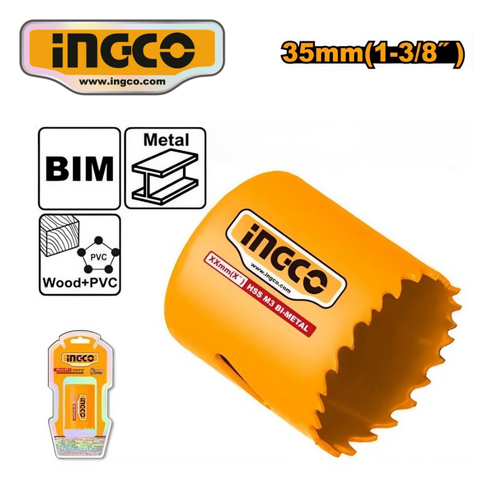 Sierra copa bimetálica de 35 mm, ideal para perforaciones limpias y precisas. Resistente y eficiente para trabajos profesionales.