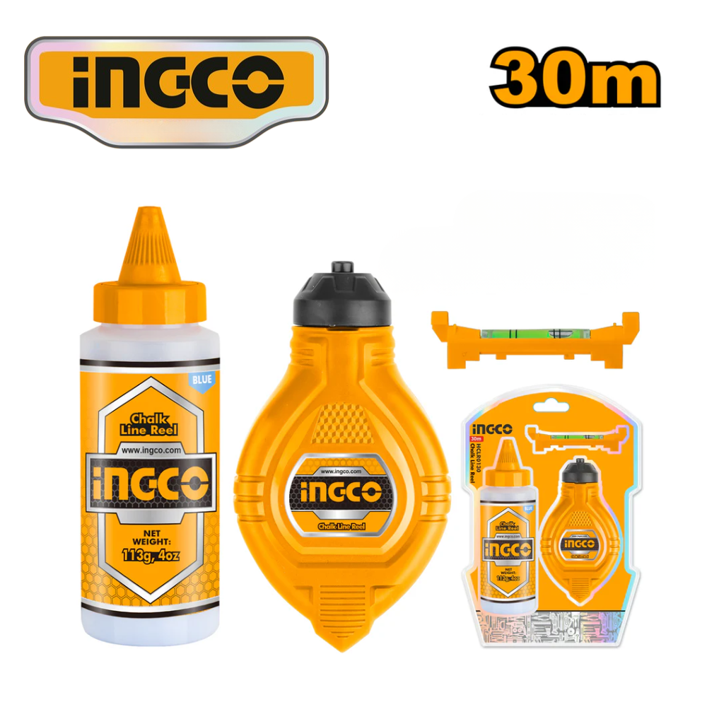 Marcado preciso y visible. Tira línea azul de 30 m ideal para trazar líneas rectas en trabajos de construcción y carpintería con rapidez y rendimiento profesional.
